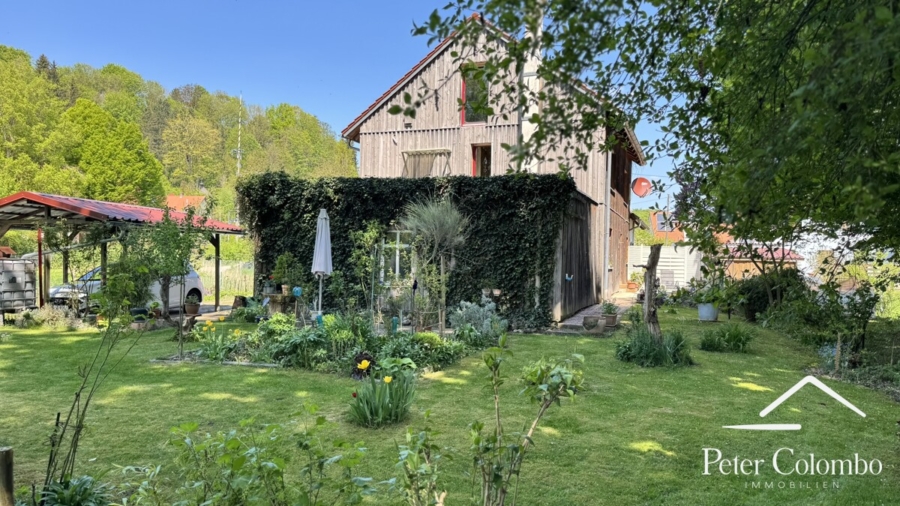 Blechdach bietet einen weiteren geschützten Stellplatz. Der liebevoll angelegte Garten ist als