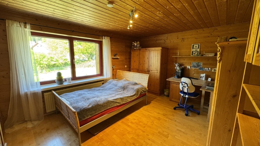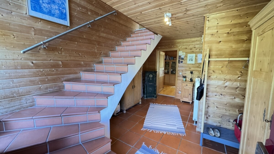 Eine massive Steintreppe führt Sie ins Obergeschoss, das mit zwei Kinderzimmern, einem
