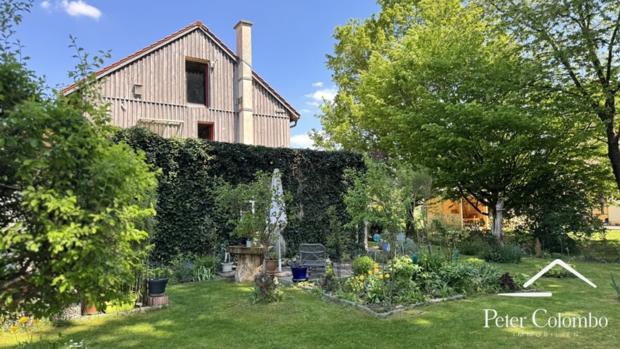 Naturgarten gestaltet und bietet einen traumhaften, freien Blick über die umliegenden Felder, eine