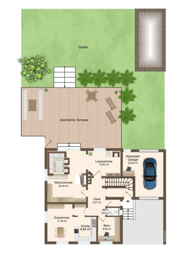 zeitlose Bauqualität mit einer durchdachten Raumaufteilung sowie einem Garten, der in seiner Gestaltung kaum zu übertreffen ist.