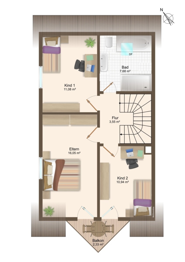 • Balkonzugang vom Elternschlafzimmer und einem Kinderzimmer