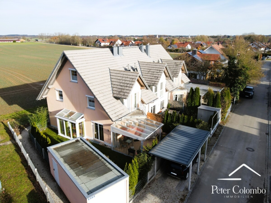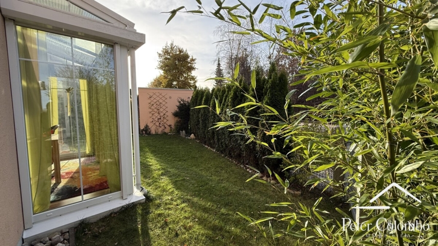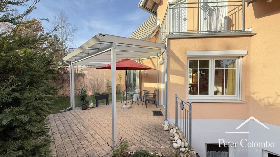 • Direkter Zugang zur großzügigen Terrasse mit Glasdach und Glasschiebetüren