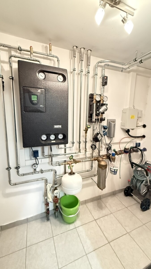 Die drei Häuser werden gemeinsam über ein Blockheizkraftwerk mit Strom-Wärme-Mix versorgt. Die Anlage wird über eine Flüssiggas-Einheit im Mittelhaus betrieben. Das Rhein-Eckhaus verfügt jedoch über eigene, separate Zähler, sodass eine transparente und korrekte Verbrauchsabrechnung gewährleistet ist.
