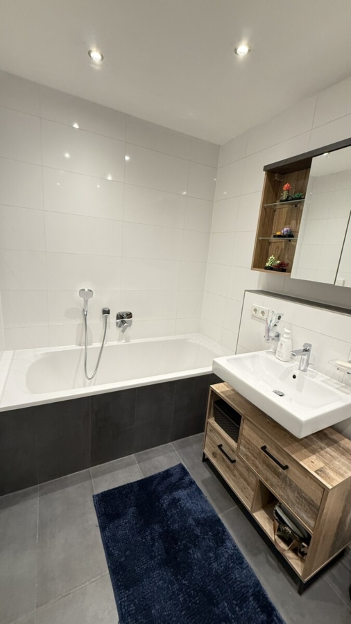 Modernes Bad mit bodenebener Dusche und Badewanne